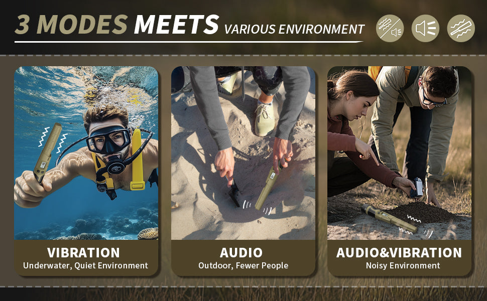 - 【3 Modes, Easy To Operate】The gold metal detector has three switchable detection alert modes, Press once to enter sound and vibration mode. Press the 2nd time to switch to sound mode. Press the third time to switch to vibration mode, Allows you to customize your detection preferences based on your environment and personal preferences